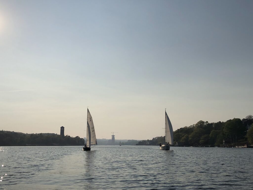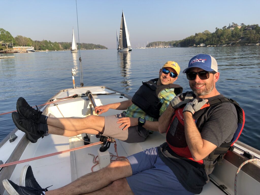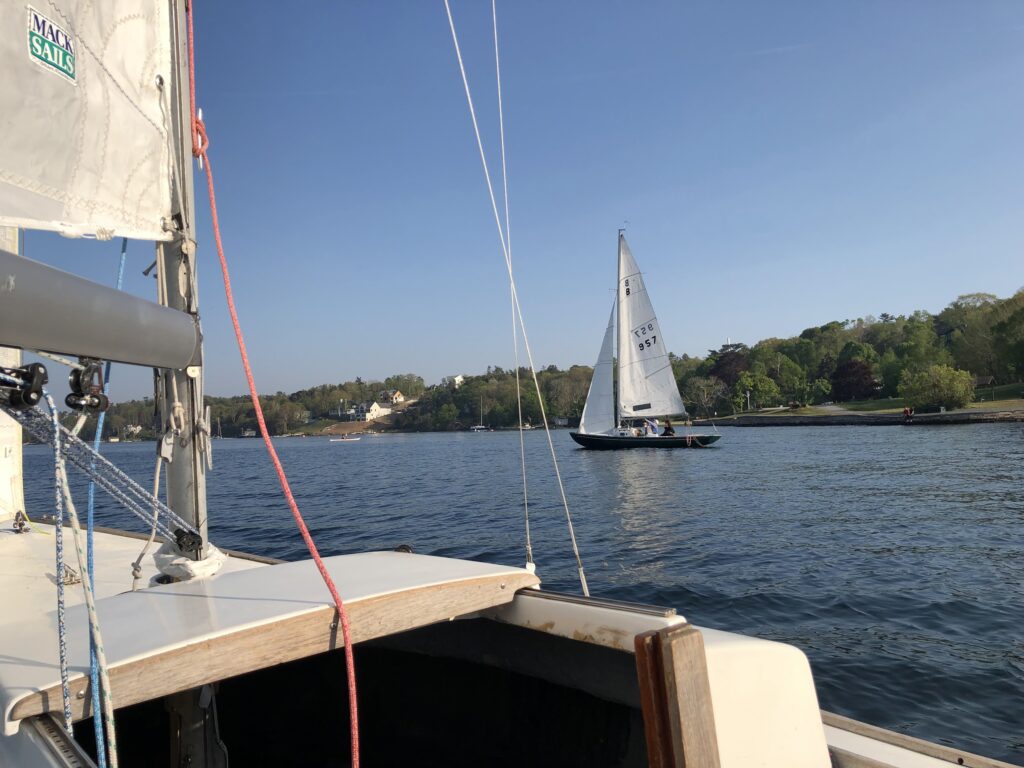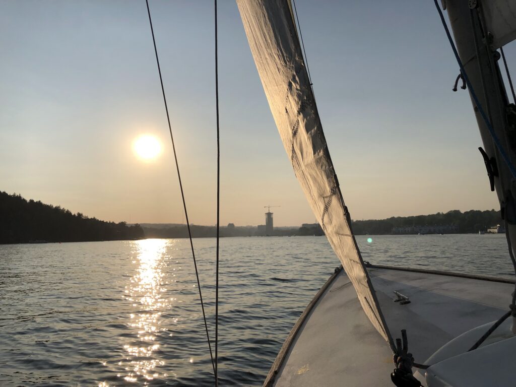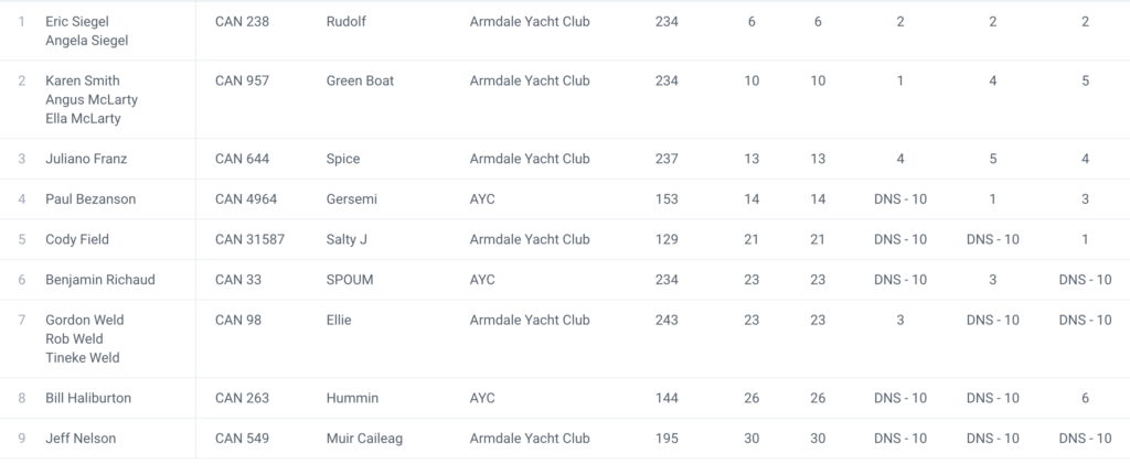 The evening started out promising, with strong winds around Armdale. As the fleet passed start and headed to the RNSYS green mark, the wind dropped and things slowed down considerably. The air was quite thick with smoke from the wildfires, burning the eyes of this reporter.